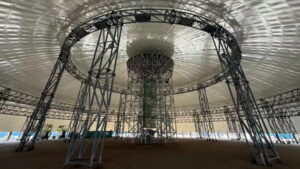 reator, desempenhando um papel fundamental na contenção de substâncias radioativas. A construção da unidade está sendo realizada pela subsidiária da CNNC, CNNC 22nd Engineering: “Esta instalação foi o resultado de uma série de inovações sistemáticas e esforços colaborativos nas áreas de tecnologia e gestão”, afirmou a CNNC. “A equipe de projeto da CNNC 22nd Engineering Co Ltd adotou diversas medidas inovadoras para construir um sistema de suporte abrangente para a tarefa de instalação.”