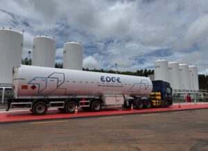 terminal de GNL conectado ao mercado global, garantindo segurança de suprimento, escala e flexibilidade para acompanhar o crescimento da demanda industrial e do transporte pesado. Com essa operação, aceleramos a maturidade da infraestrutura de gás no Brasil e ampliamos o acesso a uma energia mais competitiva e sustentável, chegando a regiões onde o gás natural nunca esteve disponível.” A Edge conta com carretas criogênicas próprias, equipadas com tanque de duplo isolamento, capazes de manter o GNL em estado líquido a aproximadamente -162 °C, garantindo eficiência e segurança no transporte rodoviário por longas distâncias. Na planta da LD Celulose, em Indianápolis (MG), foi instalada uma Unidade Autônoma de Regaseificação (UAR), conectada à rede interna do cliente, assegurando fornecimento contínuo de gás natural.