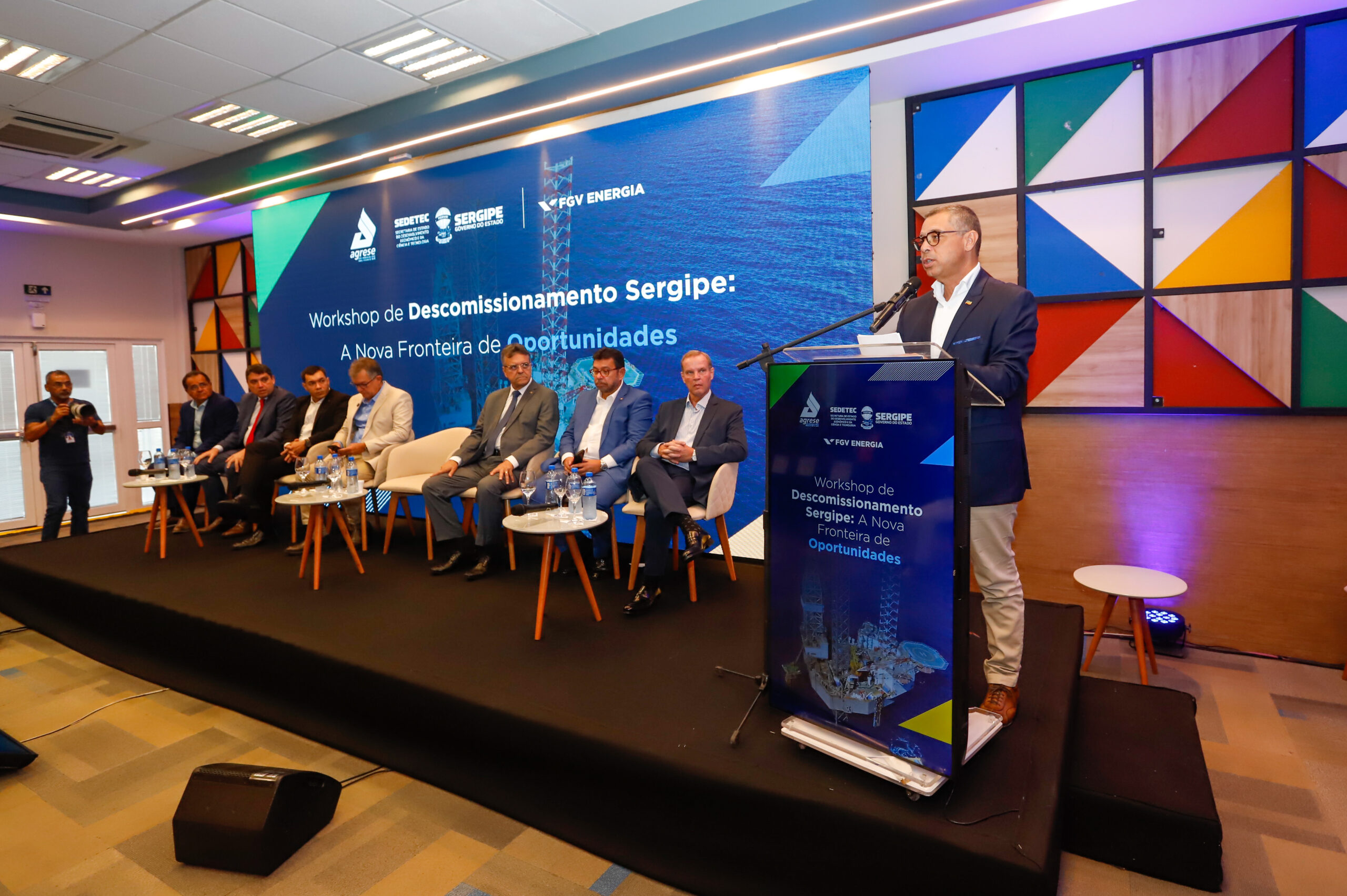No workshop, a FGV Energia apresentou um estudo sobre logística, infraestrutura e potencial de geração de emprego e renda no estado, relacionados ao Plano de Descomissionamento e ao Projeto Sergipe Águas Profundas (SEAP).