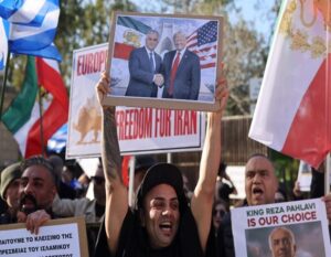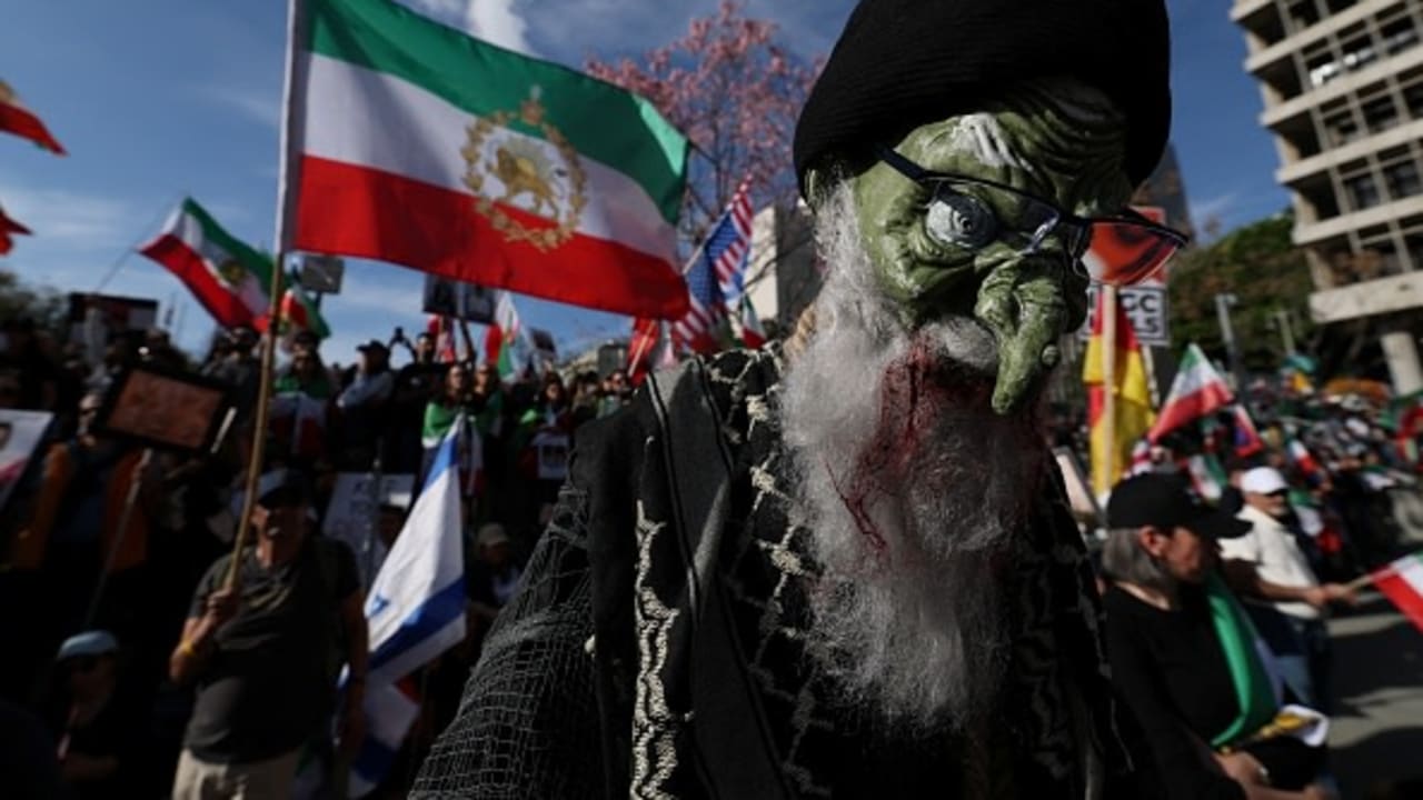 Iranianos residentes no Chipre entoam slogans durante um protesto, em comemoração ao Dia Global de Ação pelo Irã, em apoio à Revolução do Leão e do Sol do Irã, em frente ao Palácio Presidencial em Nicósia, Chipre. Os relatos surgiram em um momento em que a República Islâmica enfrenta um escrutínio renovado sobre sua resposta de segurança aos distúrbios e às restrições ao fluxo de informações.