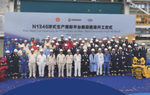 A japonesa Modec segue avançando na construção do navio-plataforma (FPSO) que será instalado no campo Gato do Mato, operado pela Shell no pré-sal da Bacia de Santos. Após o início do corte de aço da embarcação, em junho, no estaleiro da Sumitomo Heavy Industries, em Yokosuka (Japão), a empresa realizou neste mês a cerimônia de corte de aço do bloco de popa da unidade no estaleiro COSCO Qidong, na China.