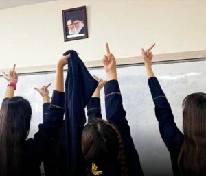 Mulheres iranianas protestam com o dedo do meio contra o Aitola ditador Ali Khamenei