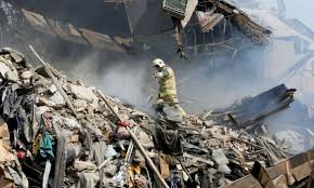 O incêndio deixou o shopping sob escombros